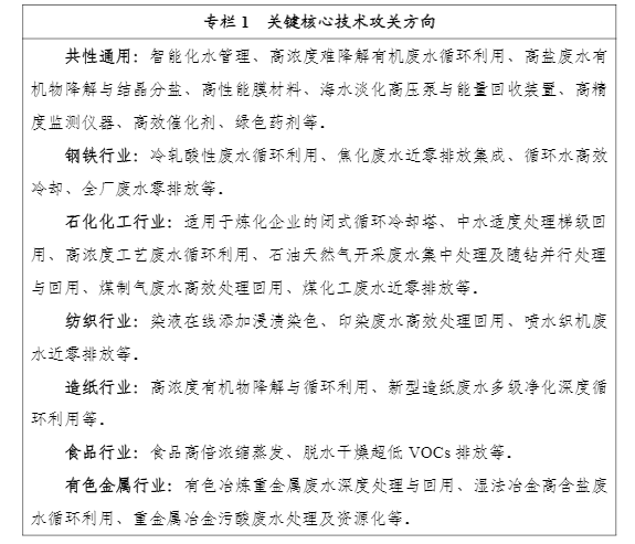 圍繞行業節水技術難點和裝備短板加強協同攻關,著力突破高濃度有機廢水和高鹽廢水處理與循環利用、高性能膜材料、高效催化劑、綠色藥劑、智能監測與優化控制等節水關鍵共性技術。