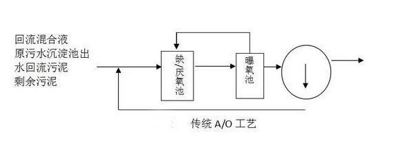 A/O工藝法也叫厭氧好氧工藝法,是改進的活性污泥法。其將厭氧水解技術用為活性污泥的前處理,后續設置好氧段。